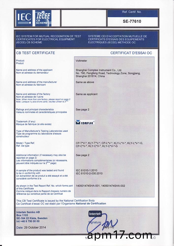 指鍼電壓錶-CB證書