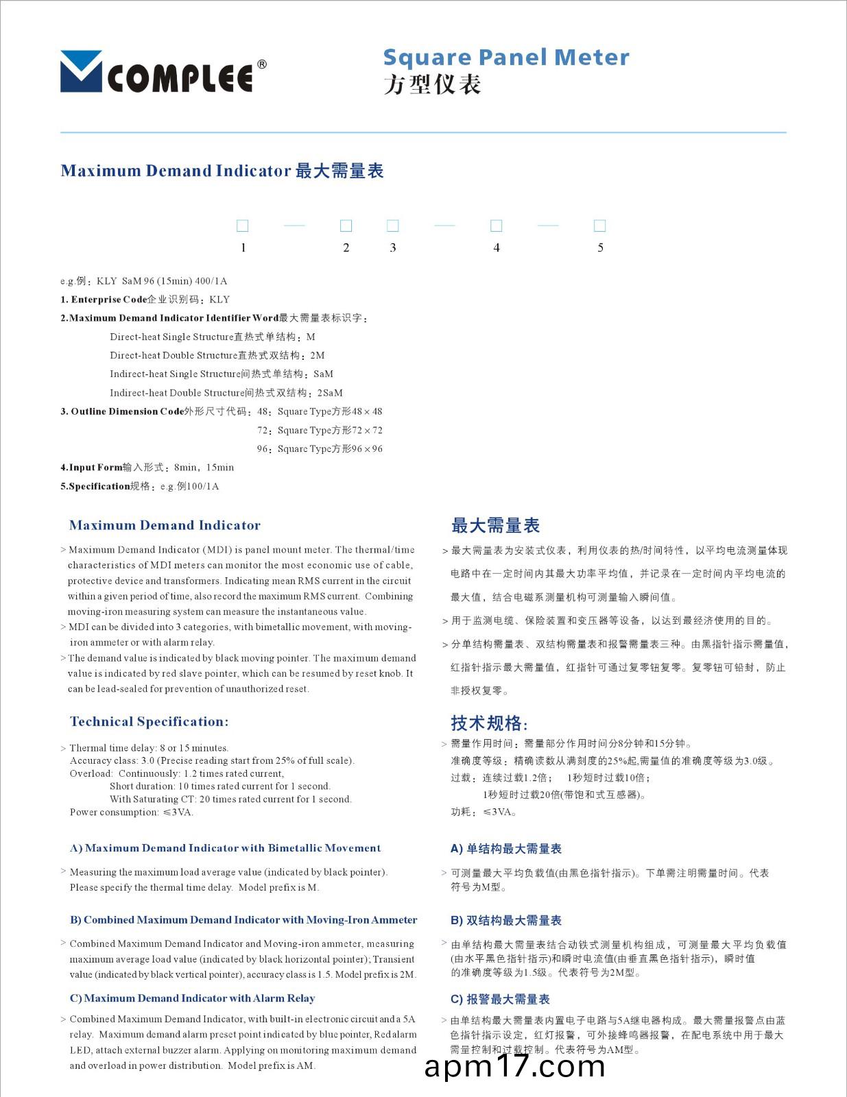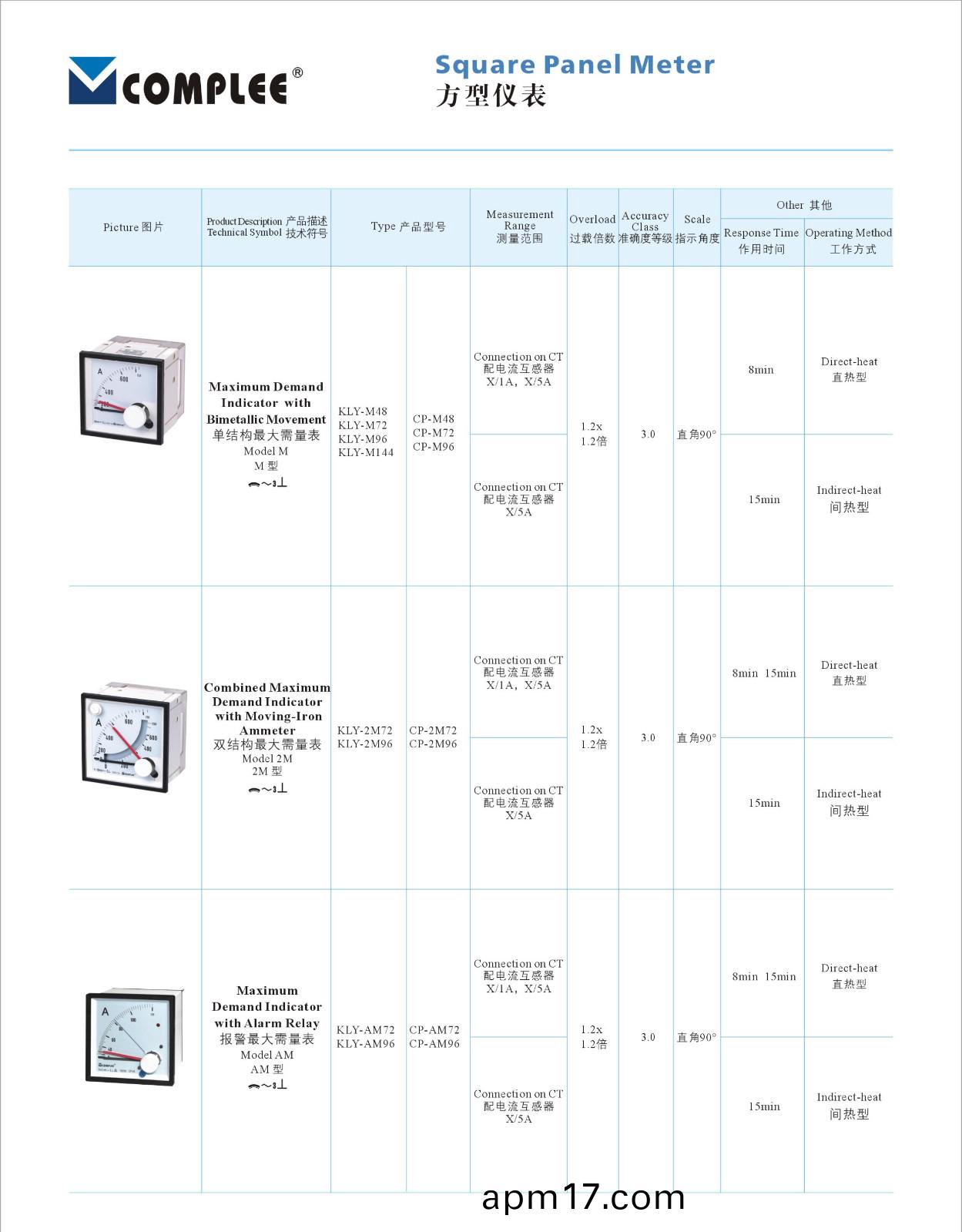 Combined Maximum Demand Indicator with Moving-Iron Ammeter KLY-2M72\2M96,CP-2M72\2M96